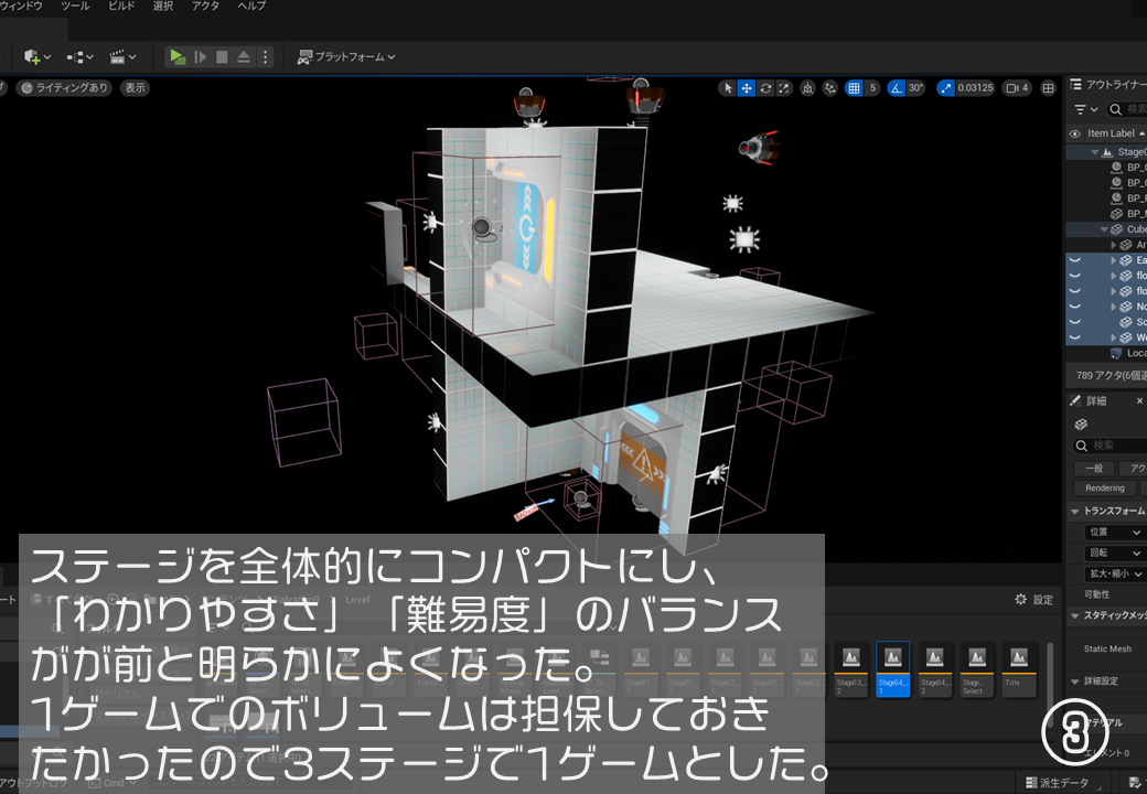 3D空間を楽しく直感的にプレイできるように3つのことを意識してゲームデザインしました。