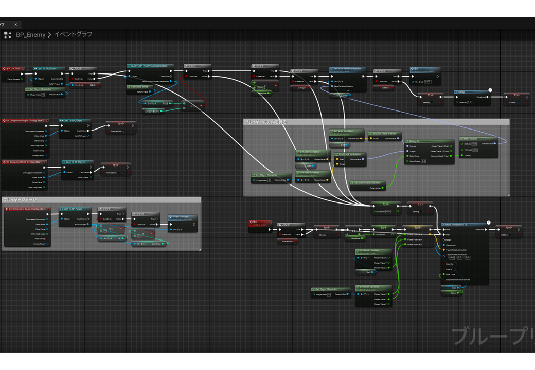そのため、敵AIのアルゴリズムを考え、エネミーコントローラーを使用し作成しました。