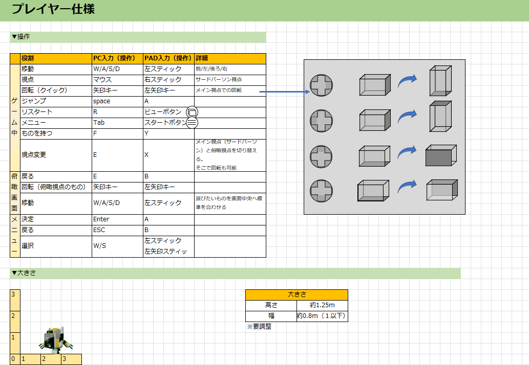 直観的にプレイできるよう「プレイヤーが向いてる方向」+「押した方向キー」で操作できる仕様を実装しました。